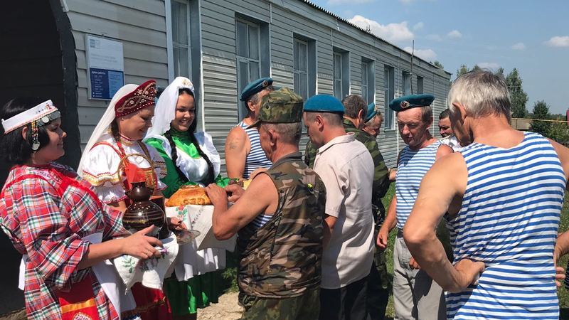 Под руководством председателя афганской организации Плеханова С.А. на встречу приехали 15 ветеранов ВДВ и тех, кто еще совсем недавно окончил службу в десантных войсках. Все приглашенные были в праздничном настроении, при полном параде, в военной форме с флажками и флагами ВДВ. На входе под соответствующее музыкальное сопровождение гостей встретили представительницы трех народностей: русская с хлебом и солью, татарская с чак-чаком и чувашская с квасом.