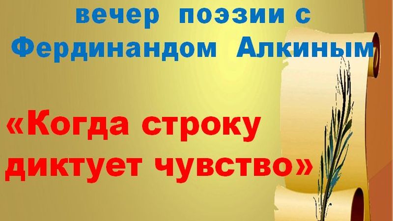 19 октября в Центральной районной библиотеке состоится вечер поэзии с Фердинандом Алкиным "Когда строку диктует чувство".