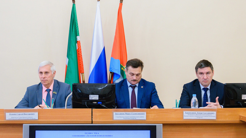 Сегодня в актовом зале Совета Верхнеуслонского муниципального района состоялось очередное совещание Главы Верхнеуслонского муниципального района Марата Зиатдинова с руководителями организаций и предприятий.