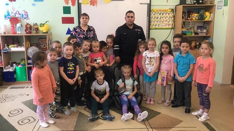 Вчера в МБДОУ «Верхнеуслонский детский сад «Берёзка» воспитатель Екатерина Зеленцова организовала встречу старших дошкольников с сотрудником ГИБДД, лейтенантом полиции Воробьевым Николаем, который провел беседу с детьми на тему профилактики детского дорожно-транспортного травматизма. Николай Александрович рассказал детям о правилах перевозки детей в автомобиле, о том, что обязательно должно использоваться детское кресло и ремень безопасности. Затем на практике дети закрепили полученные знания. Ребятам было очень интересно, они задавали вопросы, делились знаниями. Инспектор задавал детям вопросы о том, как безопасно перейти проезжую часть, где можно кататься на велосипедах и роликах, и как обезопасить себя на дороге в темное время суток, для чего нужны светоотражающие элементы. Данная беседа вызвала очень большой интерес у детей. Мероприятие является очередным в системе взаимодействия инспекторов ГИБДД и воспитанников старшей группы детского сада по формированию у детей и взрослых основ дорожной безопасности.