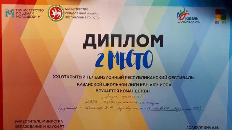 Команда КВН МБОУ "Верхнеуслонская гимназия" "Ладно, проехали!" приняла участие в XXI открытом телевизионном республиканском фестивале Казанской школьной лиги КВН "Юниор".
