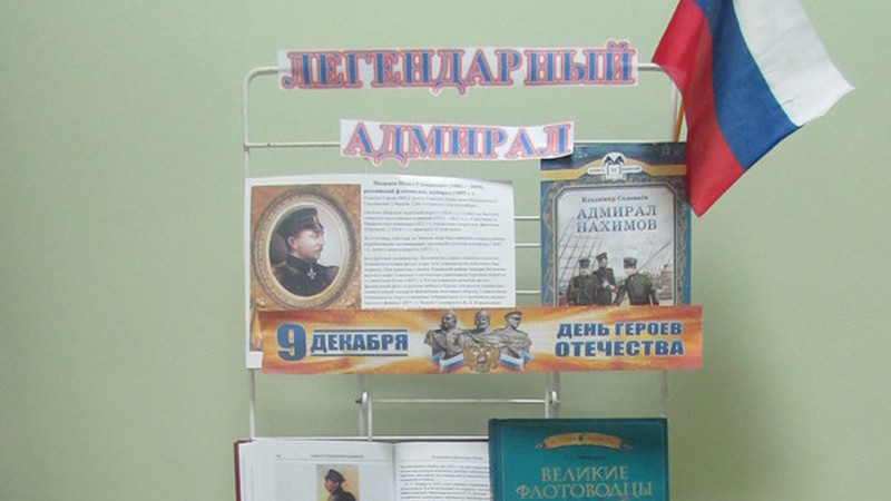 Ко Дню памяти Героев Отечества в Районной детской библиотеке для юных читателей и их родителей действует выставка-портрет «Легендарный адмирал», приуроченная к 165-летию Победы русской эскадры над турками под командованием П.С.Нахимова.