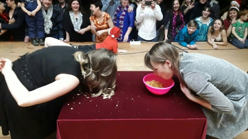 Веселье, шутки, смех, зажигательные танцы и хорошее настроение присутствовали на протяжении всего вечера. Все гости разных возрастных категорий веселились от души, водили хороводы вокруг ёлки, читали Деду Морозу стихи.