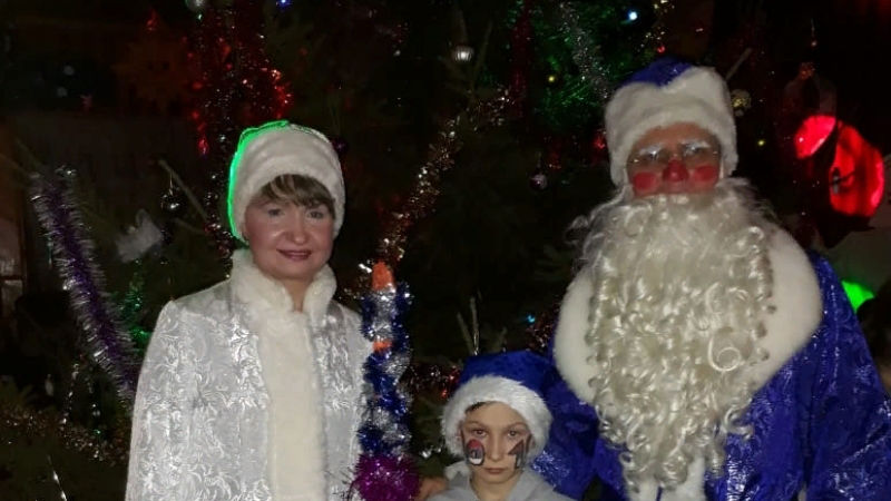 А когда пришли Дед Мороз, Снегурочка и Новый год, в роли которых были Лев Яковлев, Юлиана и Савелий Черкасовы, начались хороводы вокруг красавицы ёлки, новогодние песни и танцы. Дедушка Мороз и Снегурочка провели много новогодних конкурсов, веселых игр. Победителей ждали призы.