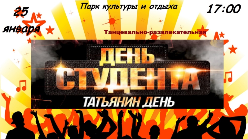 25 января в 17 часов приглашаем всех студентов и Татьян в Парк культуры и отдыха с. Верхний Услон на танцевально-развлекательную программу «День студента»!