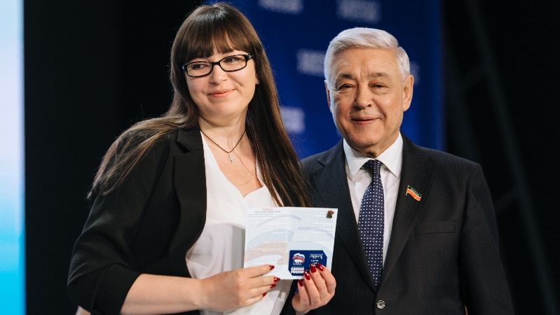 В ходе Конференции Фарид Мухаметшин вручил партийный билет Секретарю исполнительного комитета Набережно-Морквашского сельского поселения Асии Рыбкиной.