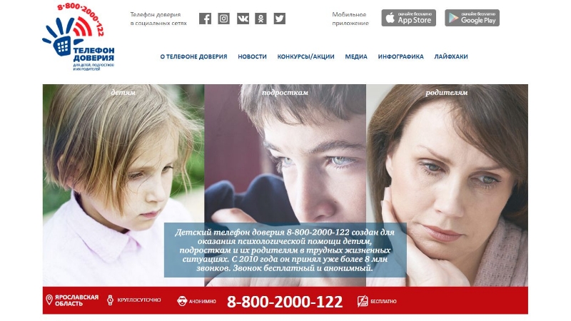 Детский телефон доверия 8-800-2000-122 создан для оказания психологической помощи детям, подросткам и их родителям в трудных жизненных ситуациях. С 2010 года он принял уже более 8 млн звонков. Звонок бесплатный и анонимный.