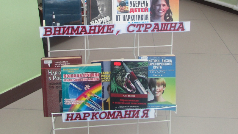 1 марта в Районной детской библиотеке, к Международному дню борьбы с наркоманией и наркобизнесом, представлена выставка-призыв «Подросток обрати внимание, страшна наркомания».