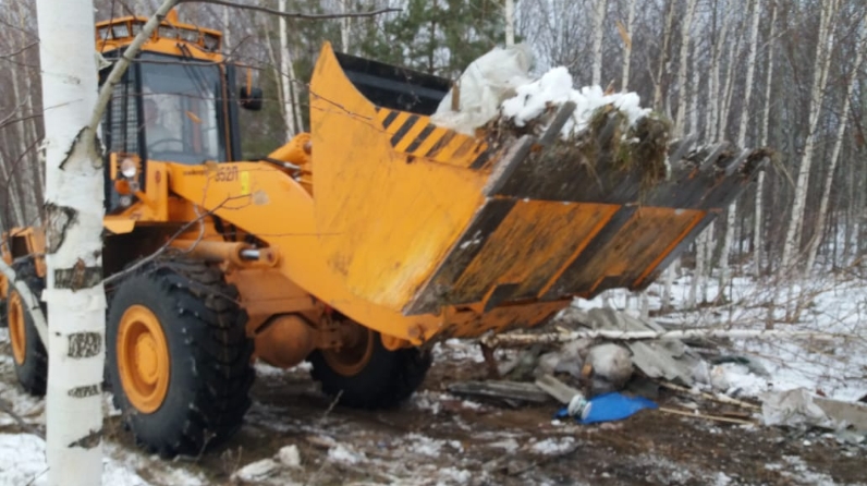 Эта работа выполнена при помощи новой специальной техники, выделенной министерством лесного хозяйства в 2019г. – погрузчиком фронтальным Амкадор. Вывезено 10 куб. м. твердых бытовых отходов.
