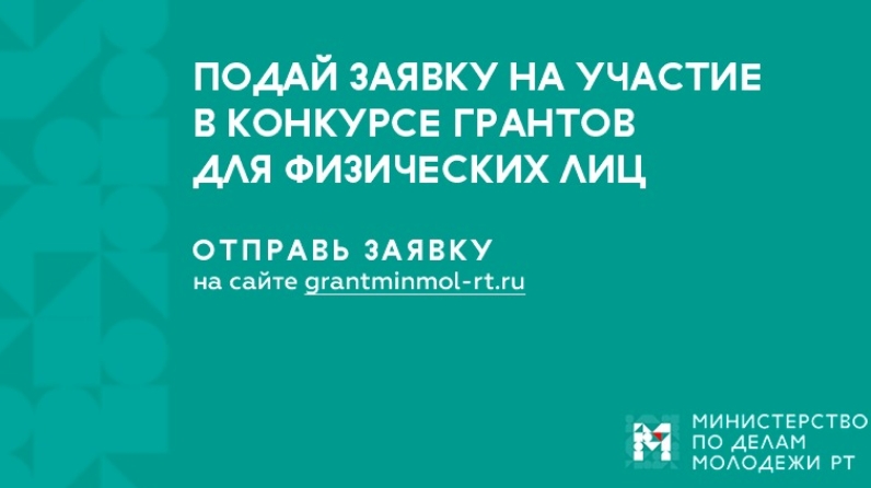С сегодняшнего дня и до 11 января на сайте grantminmol-rt.ru можно принять участие в конкурсе грантовой поддержки молодежи. В отличие от всех подобных республиканских конкурсов, на этот раз, чтобы получить грант, вовсе не обязательно представлять какую бы то ни было общественную организацию: гранты получат физические лица – молодые люди в возрасте от 18 до 30 лет.
