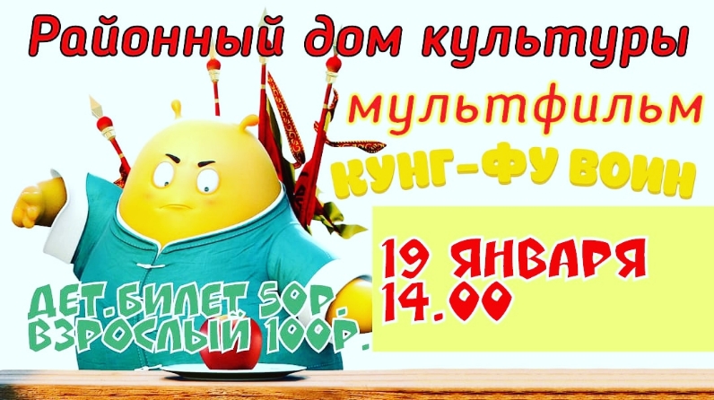 В это воскресенье в РДК ждем ребят на захватывающий и веселый мультсеанс. "Кунг-Фу воин". Начало в 14.00.