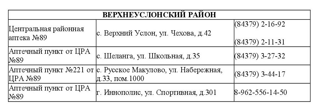 Список аптек для приобретения лекарственных средств по выплате семьям, имеющих детей в возрасте до 3-х лет