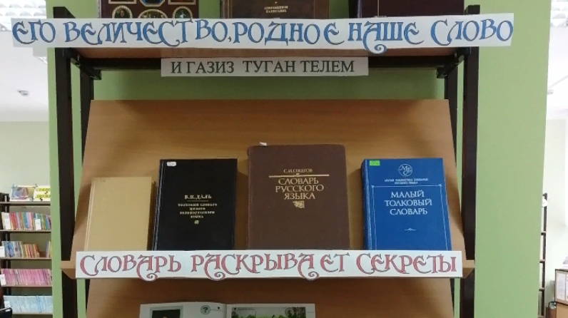 К этому дню, и в рамках празднования 100-летия образования Татарской АССР, в Районной детской библиотеке для читателей и их родителей оформлена выставка-словарь «Его величество, родное наше слово». В экспозиции выставки представлена литература, посвященная русскому и татарскому языкам, а также различные словари и энциклопедии.