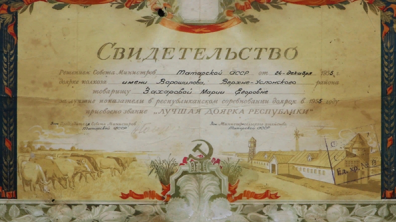 В преддверии 8 марта мы просто обязаны вспомнить нашу великую труженицу, гордость района в 50-60-е годы, активистку, лучшую доярку района и республики- Захарову Марию Егоровну. В архиве имеется ее личный фонд, один из самых богатых по количеству документов: это фотографии, удостоверения, вырезки из газет и многочисленные грамоты, драгоценную часть которых предлагаем вашему вниманию.