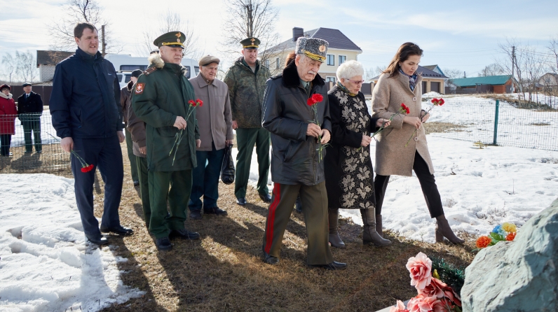 Начальная точка отсчета их посещения — пос.им.Кирова. Небольшой населенный пункт недалеко от Верхнего Услона. Когда-то в начале тридцатых приехали сюда первые переселенцы из Чувашии. Сейчас об этом напоминает памятный камень, поставленный на месте первой землянки. А рядом памятник односельчанам-защитникам Родины, труженикам тыла и детям войны. Инициатором строительства памятника явился внук и сын солдата Виктор Михайлов. К подножию памятника гости возложили красные гвоздики. А потом была короткая, но теплая встреча генерала Юлашева с рядовым Петровым. Было, им что вспомнить! И оба были рады этой встрече в канун большого юбилея Победы! Ахат Гайнуллович вручил нашему земляку и подарок.