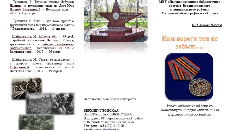 Рекомендательный список литературы о труженицах тыла Верхнеуслонского района
