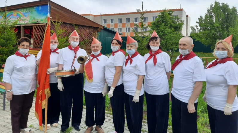 В Верхнеуслонском доме-интернате прошел сегодня слёт совсем не юных пионеров. Непременным атрибутом наравне с пионерским галстуком стали барабаны и символическое знамя пионерской организации, состоящей из жителей и работников интерната. Провели прием в пионеры достойных октябрят, а завершился слёт дружным исполнением любимой песни «Взвейтесь, кострами!!!»