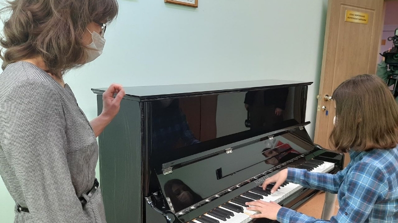 И первыми попробовали новые инструменты Руслан Мухарлямов (баян) и Влада Додонова (фортепиано). Интересуюсь у последней ее первыми впечатлениями. - Очень круто. Немного непривычно, у него такой громкий и чистый звук, мне нравится, - говорит Влада. Не удержались от соблазна и педагоги.