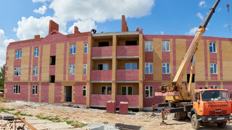 Продолжается строительство многоквартирного дома по ул. Каштановая. Хорошими темпами выполнено возведение третьего этажа. Подрядной организацией ведутся работы по возведению вентшахт на крыше, установке окон, устройство канализационного колодца, в котором будет производиться подключение к центральной сети водоотведения.