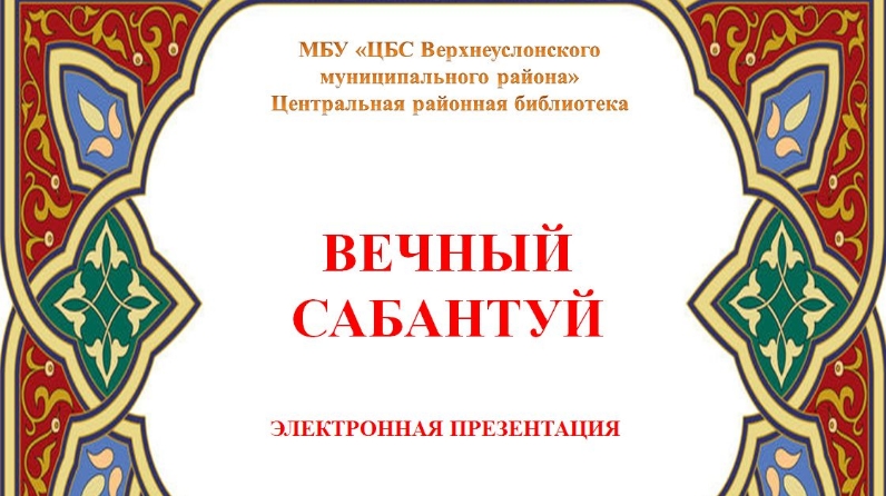 «Вечный Сабантуй» - так называется электронная презентация, которую вашему вниманию предлагает Центральная районная библиотека. Презентация приурочена к 100-летию ТАССР.