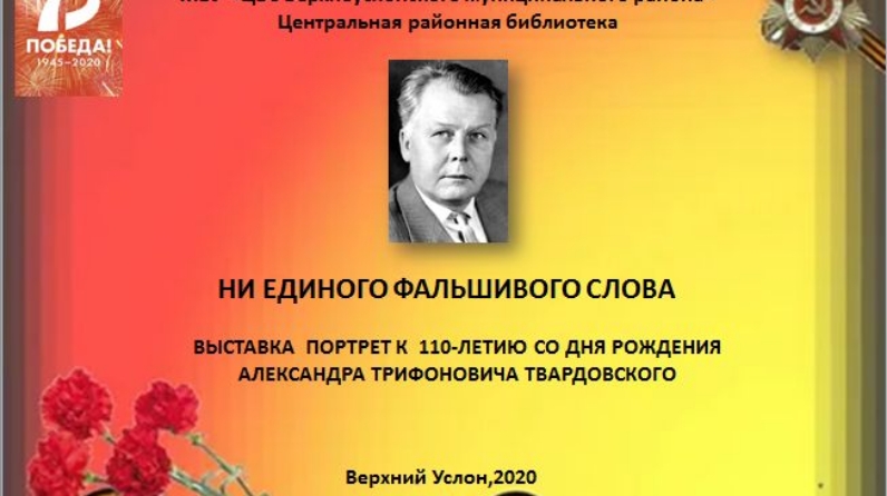 Центральная районная библиотека представляет вниманию читателей виртуальную выставку-портрет «Ни единого фальшивого слова», которая познакомит с некоторыми эпизодами из биографии, а также с литературным творчеством писателя.