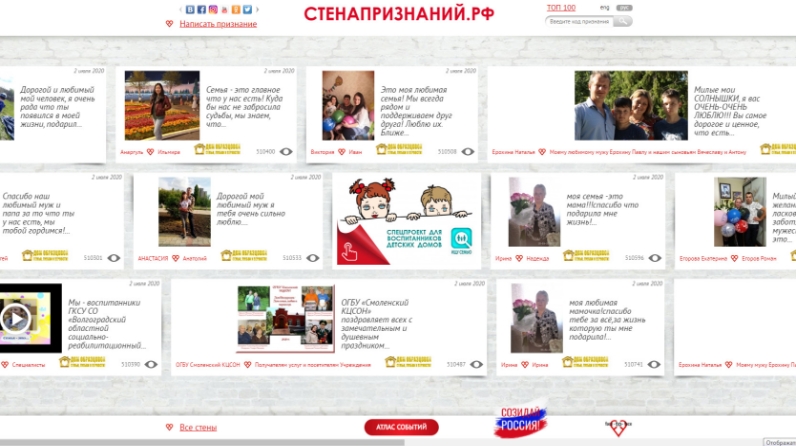 Востребованным в этот день становится ресурс СТЕНАПРИЗНАНИЙ.РФ, где жители страны с удовольствием знакомятся с признаниями в любви друг другу российских семей.