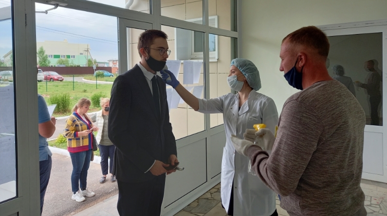 Также усилился пропускной режим выпускников на ППЭ. Сегодня, чтобы пройти на экзамен, каждого выпускника на входе встречает медицинский работник и организатор вне аудитории, которые измеряют температуру и обрабатывают руки участника экзамена. Все участники соблюдают дистанцию и находятся на расстоянии друг от друга в 1,5 метра.