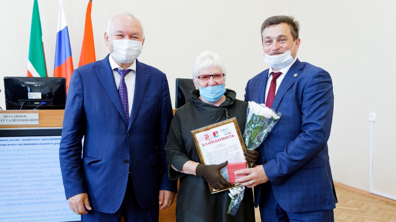 Глава муниципального района Марат Зиатдинов поздравил Римму Сергеевну и в торжественной обстановке вручил свидетельство о внесении в Книгу Почета.