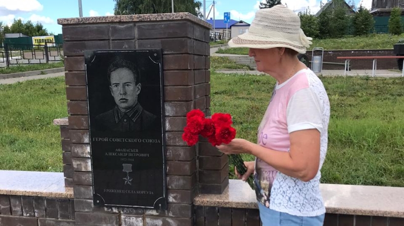 Племянницы Героя Наталья и Нина Беловы посетили парк Героев Верхнего Услона и возложили цветы к мемориальной доске своего дяди.