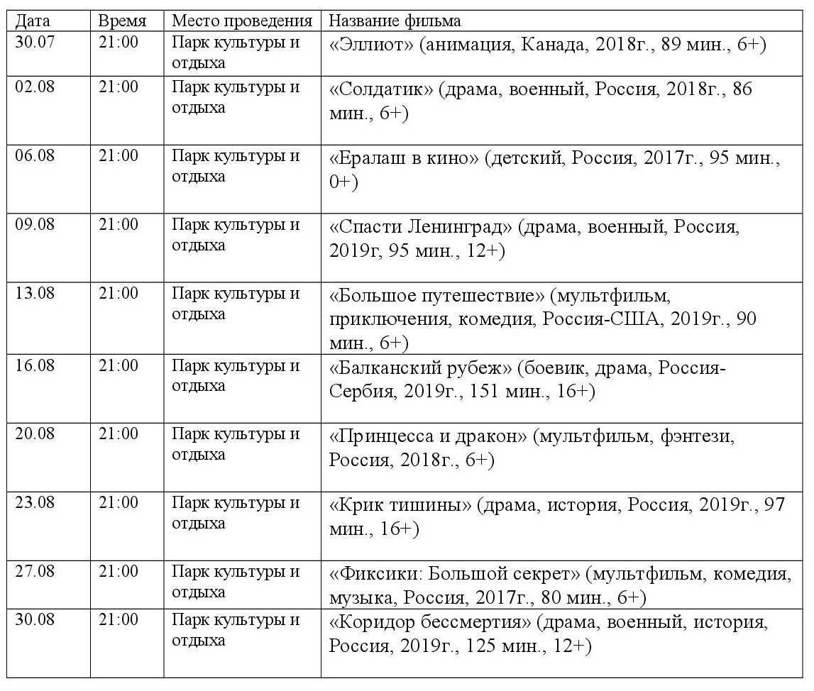 План по кинопоказам на открытом воздухе на июль-август (скачать)
