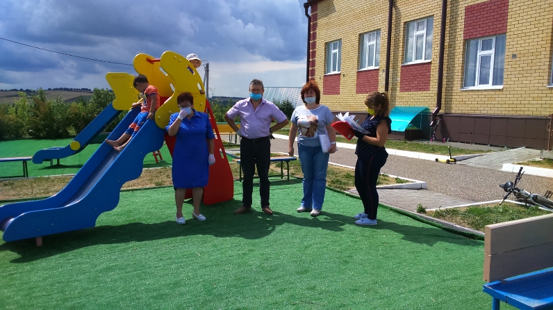 17, 21, 23 и 27 июля 2020 года комиссия в составе начальника МКУ «Отдел образования Верхнеуслонского муниципального района» Касимова В.В., заместителя начальника Ахметкаримовой А.Г., методиста Сайфутдиновой Н.П. провела проверку детских игровых и спортивных площадок, расположенных на территории ОУ и ДОУ Верхнеуслонского муниципального района РТ, на предмет их соответствия требованиям безопасности.