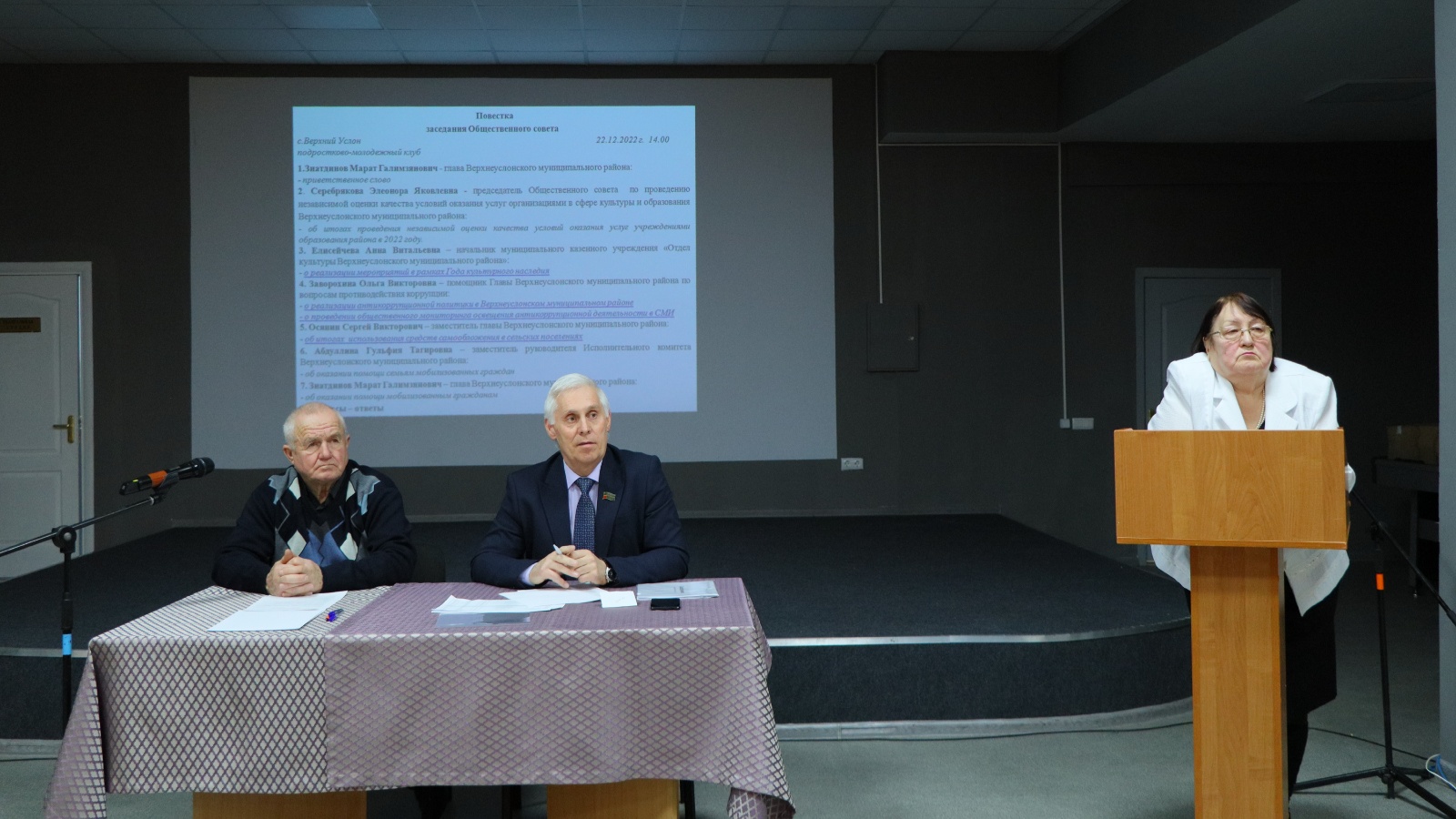 Заседание Общественного совета Верхнеуслонского муниципального района состоялось 22 декабря с участием заместителя главы района С.Осянина, руководителя аппарата Совета Л.Никитиной, помощника главы по вопросам противодействия коррупции О.Заворохиной, заместителя руководителя Исполнительного комитета района по социально-культурным вопросам Г.Абдуллиной. Вел заседание председатель Общественного Совета М.Сагдеев.