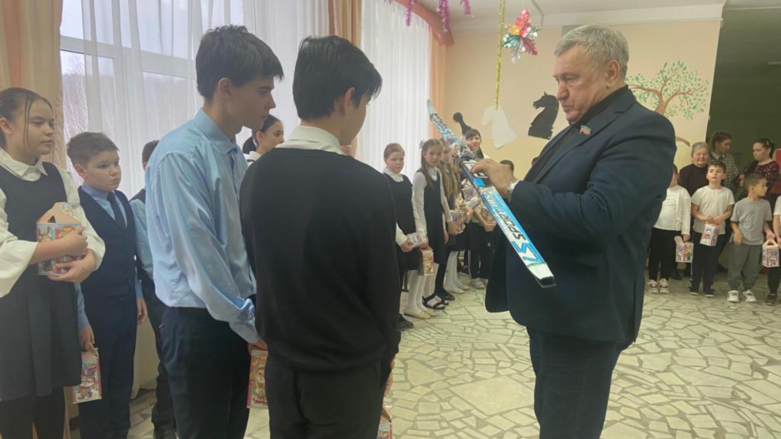 Сегодня в МБОУ Введенско-Слободская ООШ приехал депутат Госсовета РТ Вавилов Владимир Владимирович. Снова в преддверии нового года осчастливил детей новыми лыжами и сладкими подарками.