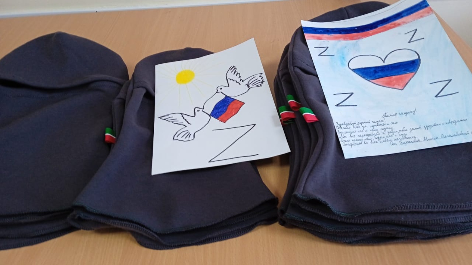 Учитель технологии Корнева Г.Г. и мама учеников школы Баранова Алина сшили 30 балаклав. Ткань была куплена на средства семьи ветерана педагогического труда Деловой Раисы Михайловны. Вместе с балаклавами будут переданы рисунки и письма обучающихся нашей школы.