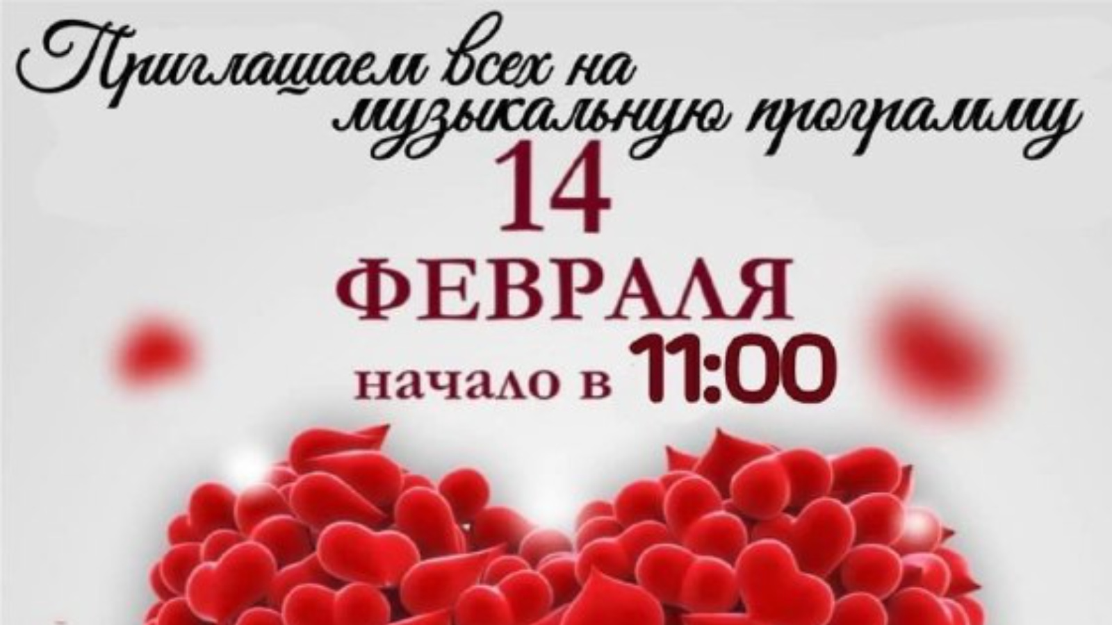 14 февраля в 11:00 приглашаем всех на музыкальную программу «Всё начинается с любви…»!