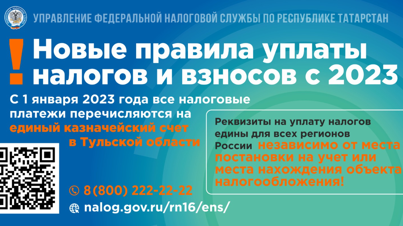 С 1 января 2023 года все платежи, администрируемые налоговыми органами подлежат уплате на казначейский счет, открытый в Управлении Федерального казначейства по Тульской области.