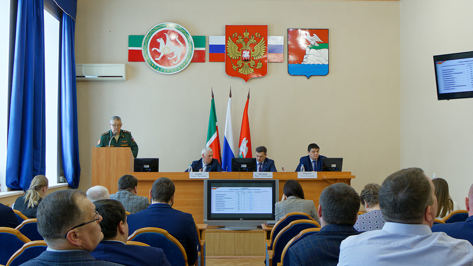 Фасхутдинов Рашит – военный комиссар Верхнеуслонского района выступил с вопросами о службе по контракту и о принятых мерах по решению вопросов семей участников СВО. С вопросами об организации работы по решению вопросов семей участников СВО (по итогам встреч с главой), о ходе работ по инвентаризации земельных участков и имущества (динамика) и о работе по сбору средств самообложения выступил Осянин Сергей – заместитель главы Верхнеуслонского муниципального района.