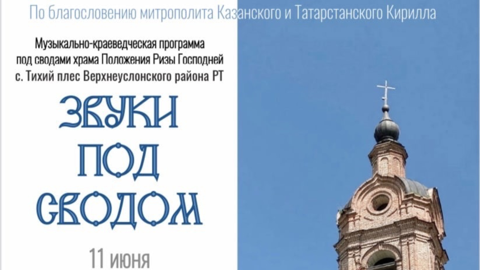 «Звуки под сводом» - уникальная программа в старинном возрождающемся храме села Тихий Плес. Центральным событием является музыка, 11 июня выступит камерный оркестр «Ренессанс» с лучшими произведениями русских классиков.