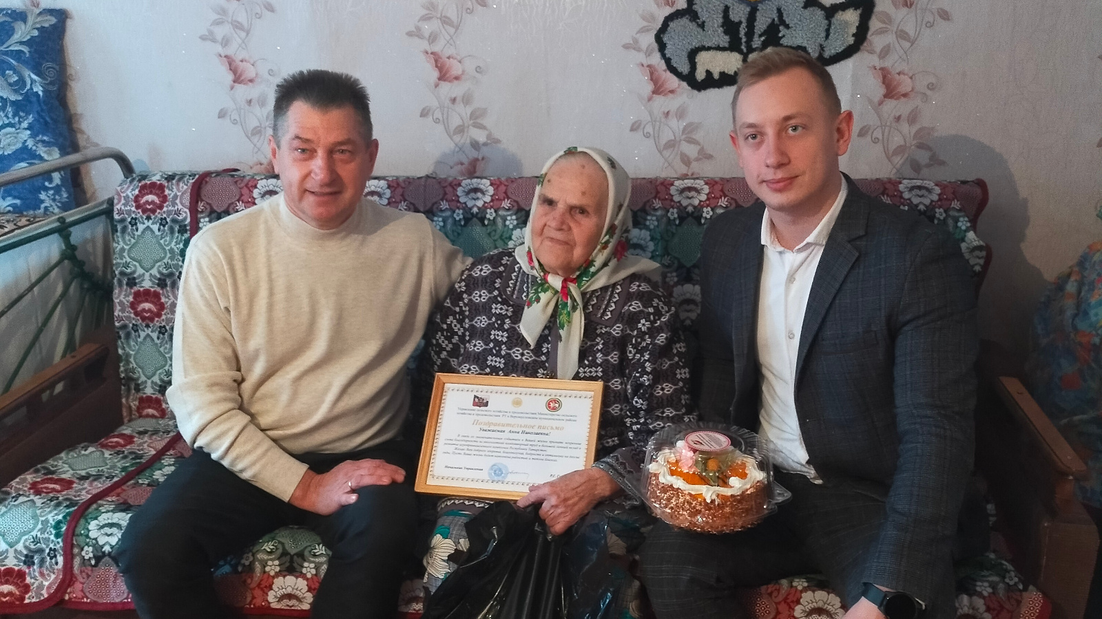 На прошлой неделе Начальник Управления сельского хозяйства и продовольствия РТ в Верхнеуслонском муниципальном районе - Рашит Губайдуллин и сотрудники управления совместно с главой Ямбулатовского СП – Максимом Жестковым, поздравили ветеранов сельского хозяйства с юбилеем. Вручили им поздравительные письма и подарки.