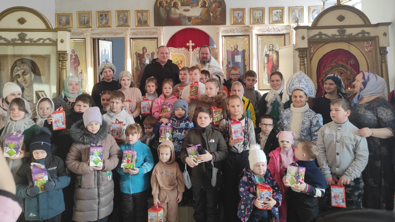Настоятель церкви отец Пётр провел праздничный молебен, благословил детей и каждому вручил сладкий подарок. Праздник получился по-настоящему радостный, светлый и по-домашнему тёплый.