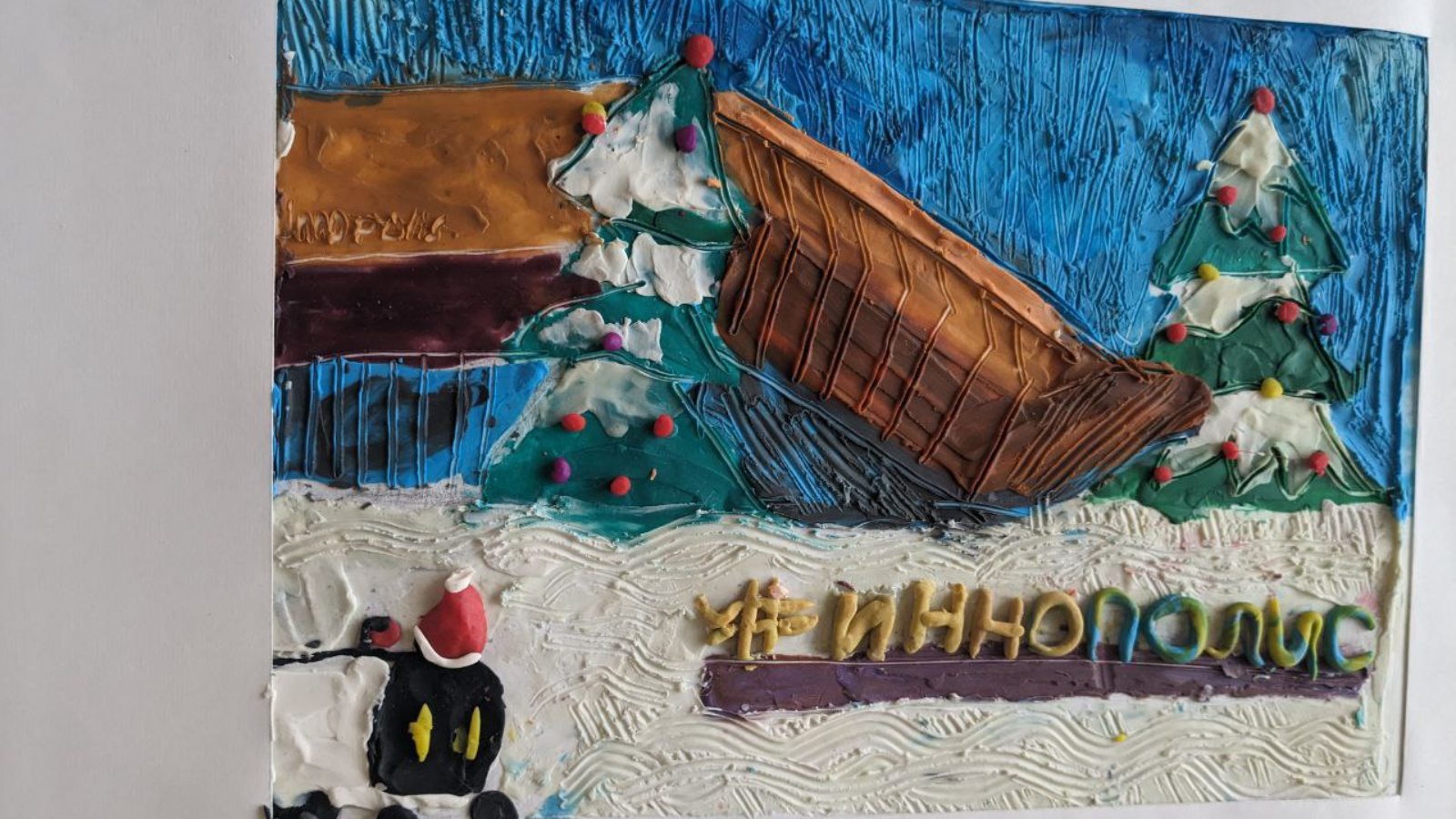 А в пластилиновых композициях, выполненных под руководством Лилии Гайнановой (предмет "Лепка") отобразились узнаваемые городские точки притяжения: футуристический силуэт здания Университета Иннополис и всеми любимые роботы-доставщики.