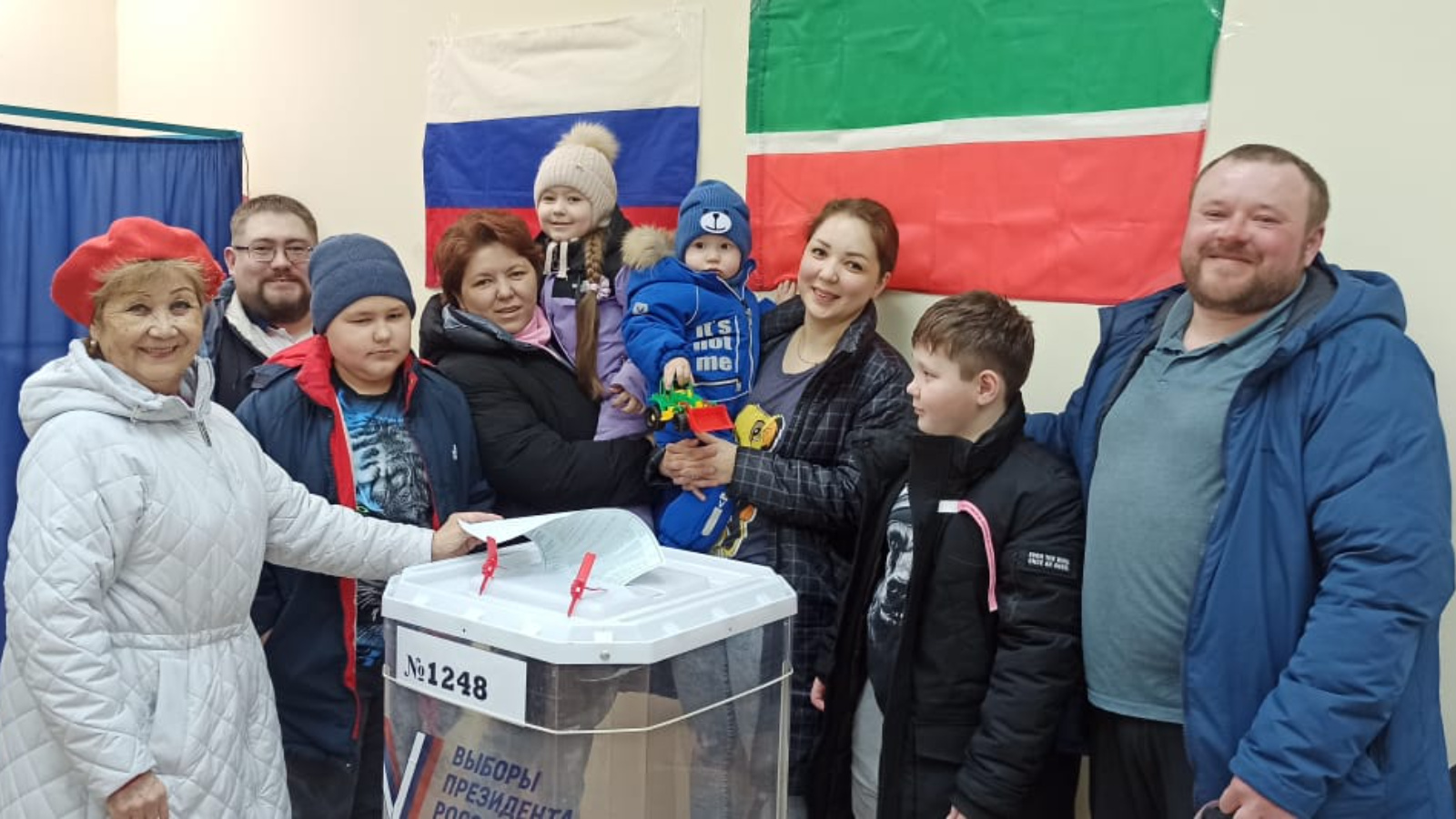 Основатель и руководитель хора ветеранов Минлегуль Сабировна Шайдуллина всей своей дружной многочисленной семьёй - с детьми и внуками отдали сегодня голоса за свое будущее, которое возможно только под руководством надёжного и сильного Президента.