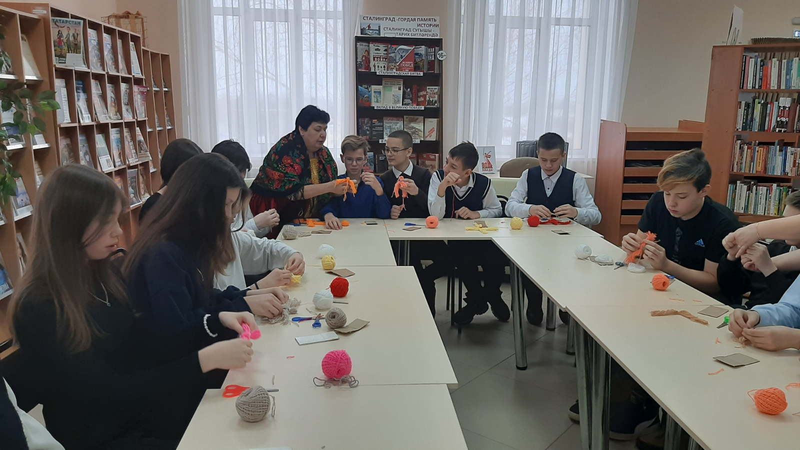 В Центральной районной библиотеке в рамках реализации федерального проекта «Пушкинская карта» и Масленой недели для учащихся «Верхнеуслонской школы» был проведен мастер-класс «Веселая масленица». Участники мероприятия узнали много интересного о празднике, его традициях, обычаях. Сравнили особенности современного празднования с обычаями прошлых веков. Рассмотрели куклу – оберег, изготовленную по образцу народной обрядовой куклы, которая олицетворяет достаток семьи и защищает дом от злых духов. После чего они приняли участие в мастер - классе и сделали своими руками куклу – Масленицу из пряжи и лоскутов ткани, а затем поиграли в народные игры.