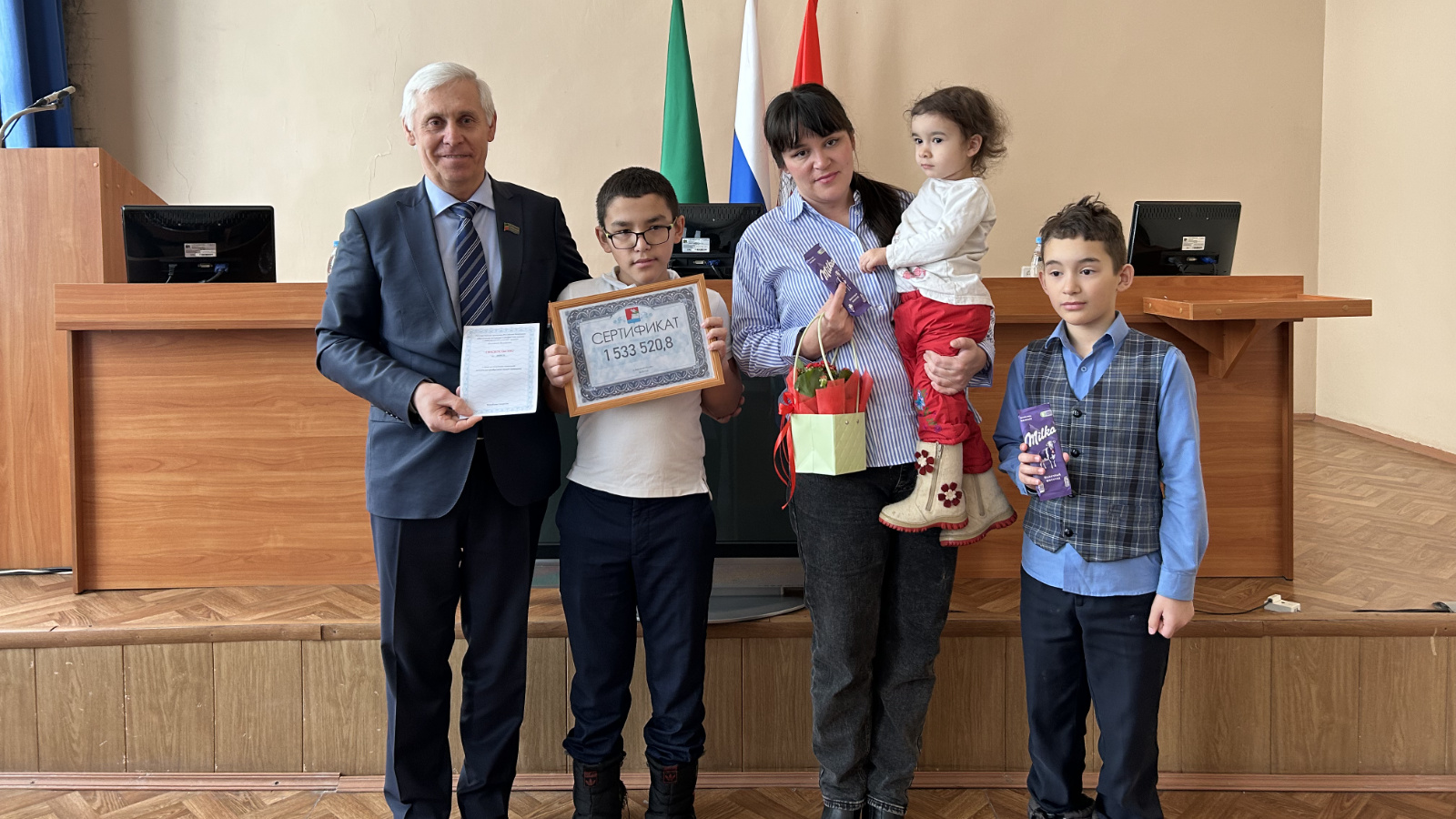 Сегодня в Верхнеуслонском районе состоялось торжественное вручение сертификата по программе "Молодая семья" многодетной семье Маликовой Э.Р.