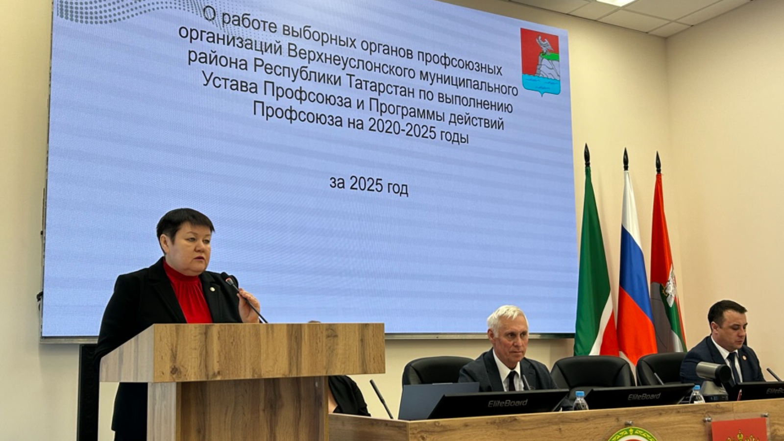 С отчетным докладом «О работе выборных профсоюзных органов организации профсоюза Верхнеуслонского муниципального района Республики Татарстан по выполнению Устава Профсоюза и Программы действий Профсоюза на 2020-2025 годы» за прошедший год выступила доверенное лицо республиканского комитета в Верхнеуслонском муниципальном районе Лилия Хурматуллина. Председатель Молодежного совета профсоюза Алина Салахова поделилась информацией о его работе и о планах на 2026 год.