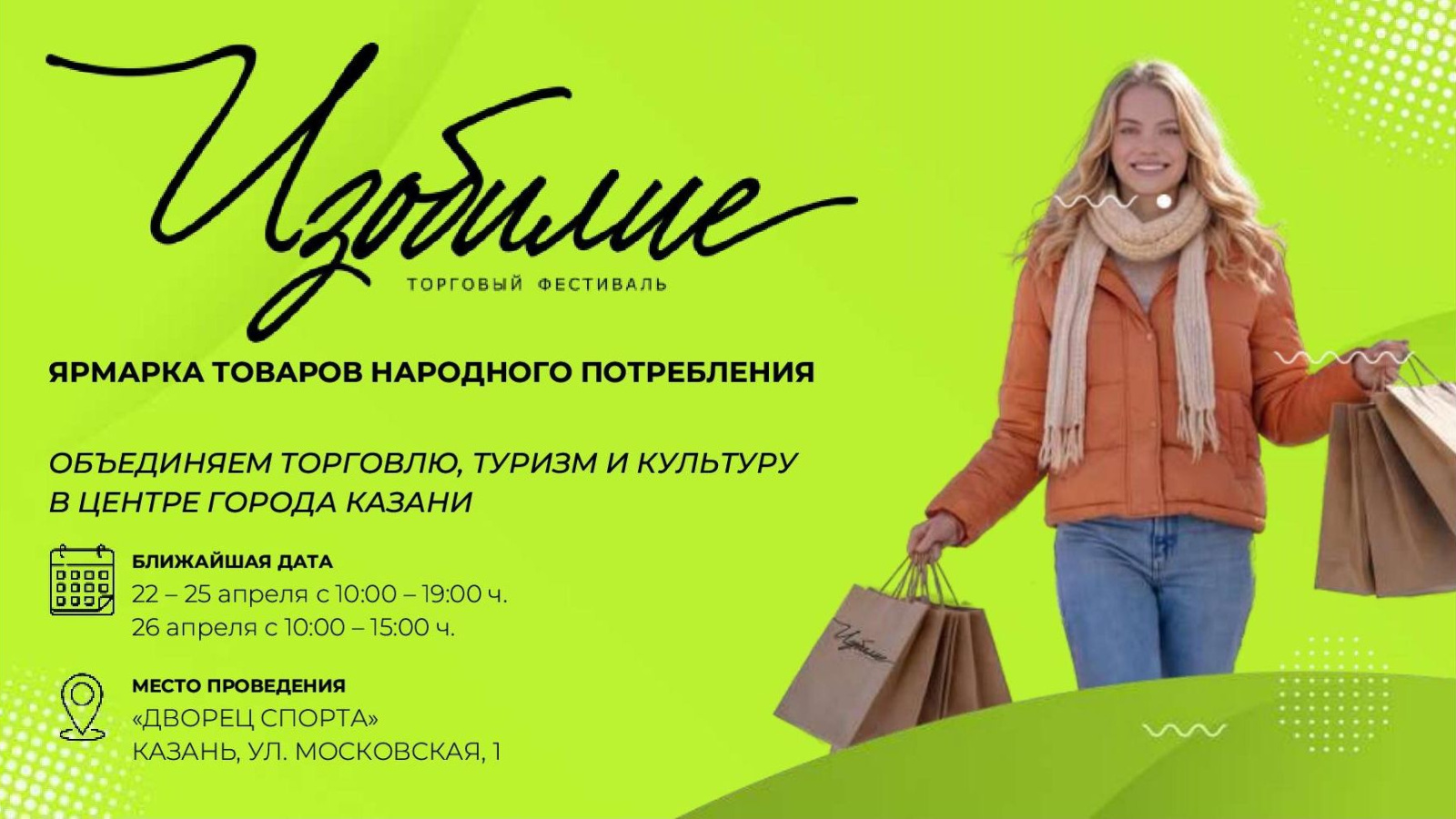 Татарстанский торговый фестиваль <Изобилие> пройдёт в Казани с 22 по 26 апреля на базе ГБУ <Дворец спорта>.