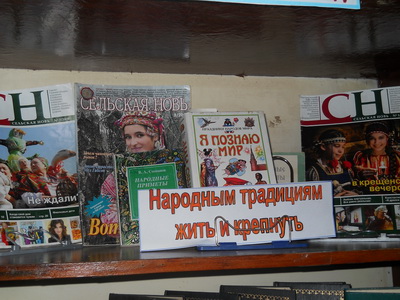 13 декабря 2010 года в Маматкозинской сельской библиотеки, библиотекарем Фокеевой Е.А. была оформлена выставка под названием «Красота рожденная народом» Задумывались ли вы когда-нибудь, каким бесценным наследством одарили нас наши предки? Все мы пользуемся им, начиная с рождения до последнего мгновения жизни. Это пословицы и поговорки, песни, частушки, сказки загадки, легенды, былины и т.д. Народ создавал его веками, и оно по-прежнему живет в нашей культуре и сознании каждого российского жителя.