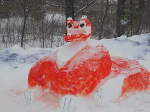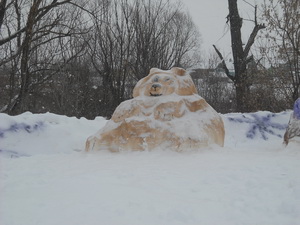 Силами работников Маматкозинского СДК, МБОУ «Маматкозинская НОШ», МБДОУ «Маматкозинский детский сад» около здания начальной школы были построены ледяные фигуры. Они раскрасили их цветным водным раствором. Фигуры изображают героев народной сказки «Колобок».