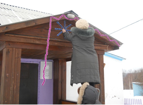 14 декабря 2010 года. Директор Маматкозинского сельского дома культуры Шашкова Н. И. и художественный руководитель Мельникова Л.М. украсили здание сельского дома культуры.