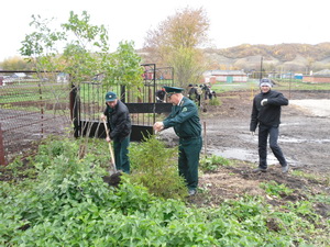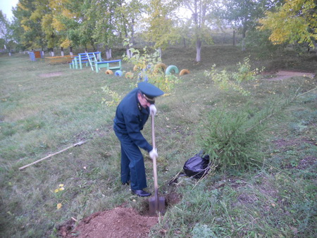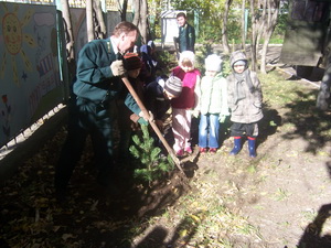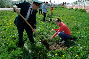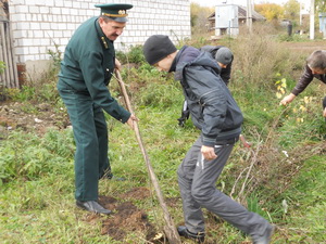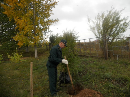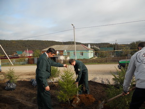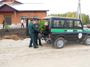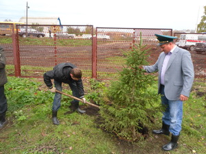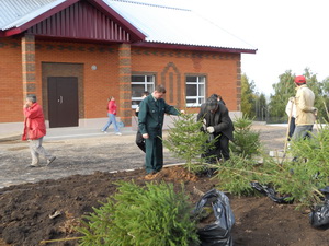В озеленение приусадебной территории приняли участие участковый лесничий Свияжского участкового лесничества Исхаков Фанис Хамисович, мастер леса Пензин Виктор Сергеевич и инженер лесовосстановления Фокеев Павел Викторович.